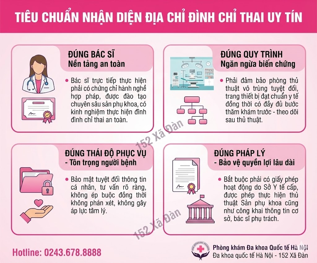 Trong đình chỉ thai, địa chỉ thực hiện quan trọng không kém phương pháp. Một cơ sở không đủ điều kiện y khoa có thể khiến thủ thuật vốn đơn giản trở thành nguy cơ lâu dài cho sức khỏe sinh sản.