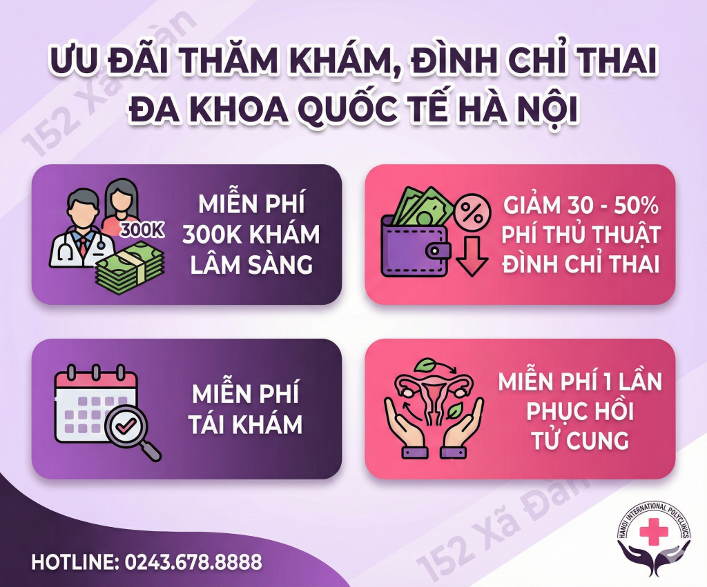 ĐẶC BIỆT: Phòng khám cũng triển khai các chương trình ưu đãi hấp dẫn dành cho thai phụ nhanh tay đăng ký lịch thăm khám trước [TẠI ĐÂY]. Các ưu đãi hỗ trợ có thể lên đến 50% kèm theo nhiều quyền lợi ưu tiên hấp dẫn khác như: